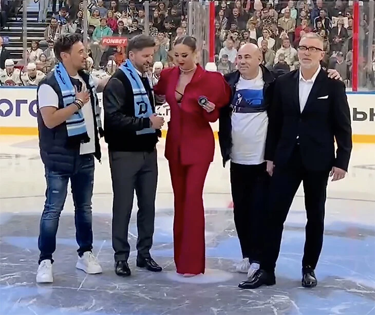Бузова упала на льду в КХЛ. С ней были рэпер Серега и Иосиф Пригожин