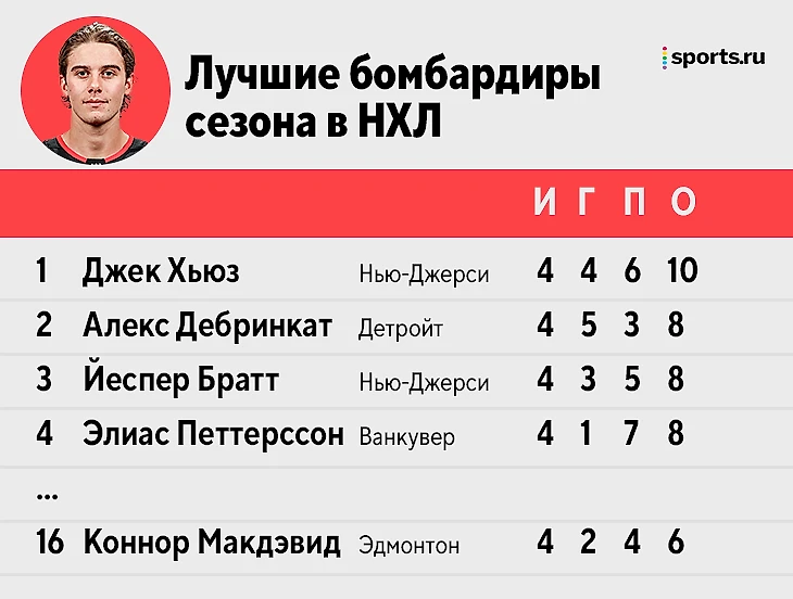 В прошлом сезоне Джеку не хватило всего одного очка до первой в карьере сотни. На этот раз лидер «Девилс» сходу начал разрывать – и сейчас выглядит главной угрозой для Коннора Макдэвида в его погоне за очередным титулом лучшего бомбардира лиги.