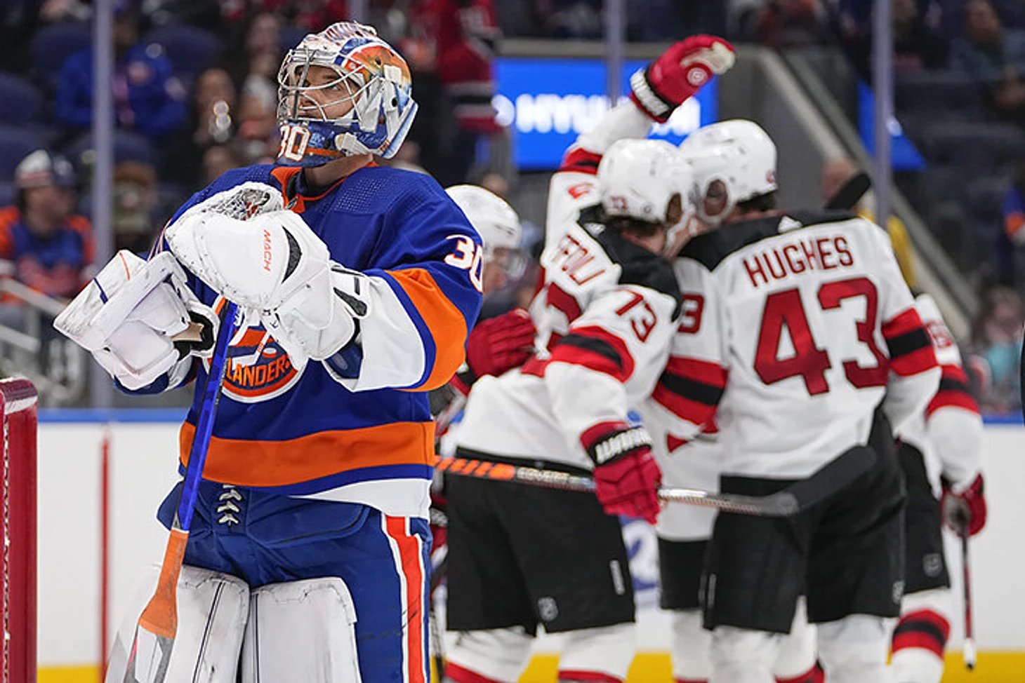 В главном матче дня вместо вязкой «низовой» игры, которыми славятся «Айлендерс», случилась лихая перестрелка, где, однако, здорово смотрелись вратари, а заводилой стал молодой лидер «Девилс» Джек Хьюз.