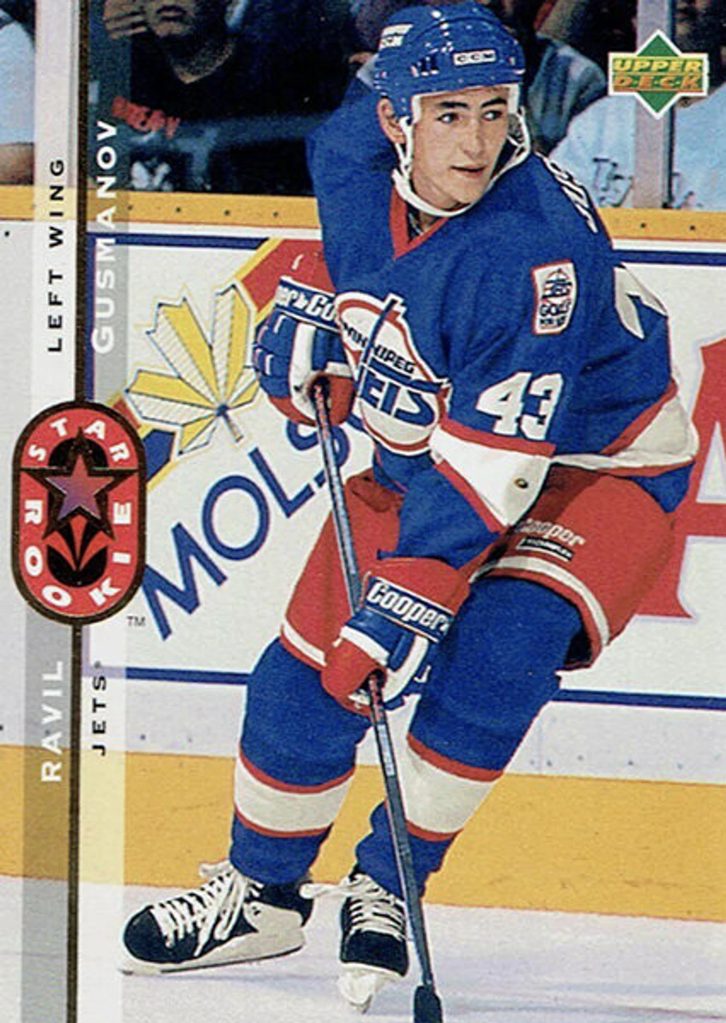 Карьера Равиля Гусманова прочно ассоциируется с двумя клубами – «Трактором» и «Металлургом». Поездка за океан была как раз между ними. Ее итог – два подъема в «Виннипег» и 4 матча в НХЛ без очков.