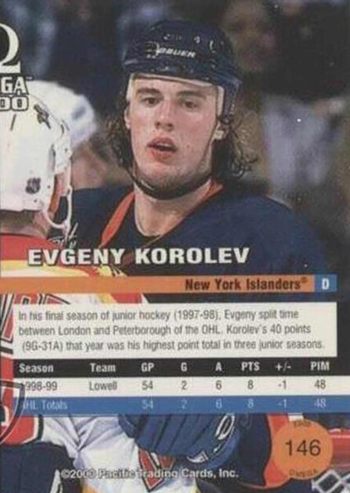 Евгений Королев решил пробиваться в НХЛ через канадскую юниорку – в итоге дважды выходил на драфт (1996, 1998) и оба раза выбирался «Айлендерс» в поздних раундах (№192, 8-й и №172, 7-й). Защитник задержался в системе клуба на несколько сезонов, но провел за главную команду только 42 матча (1+4), после чего рванул на родину.