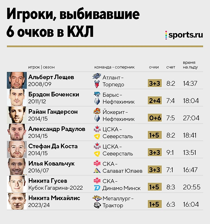 Вообще 6 очков в матче – довольно редкое событие. Так что казахстанский нападающий попал в клуб для избранных.