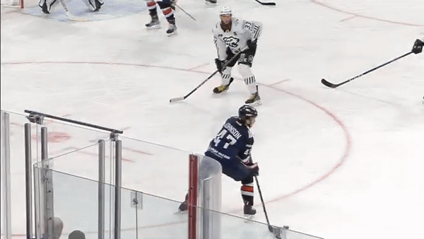● на 2-й минуте поборолся у борта, отдал на синюю Маклюкову, тот – под бросок Робину Прессу;