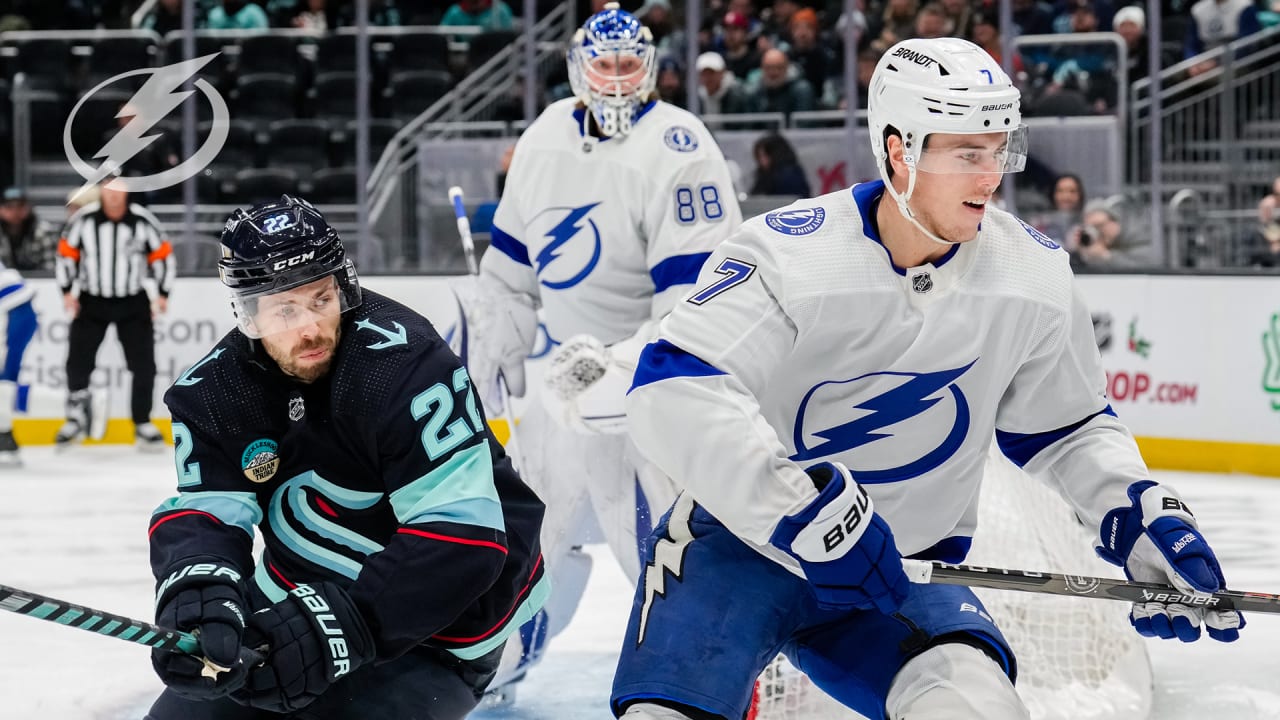 «Сиэтл Кракен»-«Тампа-Бэй Лайтнинг» 3:4 (ОТ). Никита Кучеров в овертайме принёс победу гостям. Никита Кучеров набрал 3 очка (2+1), Энтони Чирелли набрал 2 очка (1+1), Брендон Хагель отдал 2 результативные передачи, Андрей Василевский отразил 26 бросков. У хозяев Джордан Эберле отдал 2 результативные передачи.