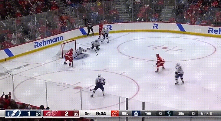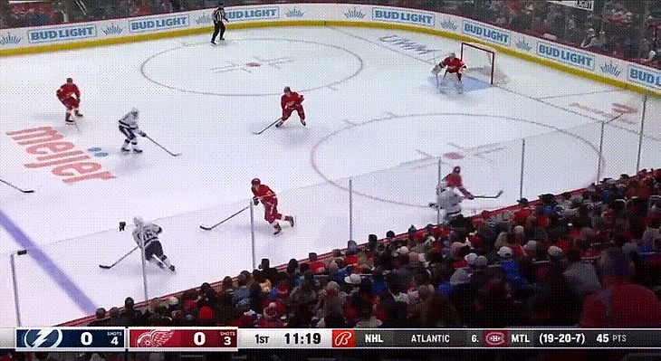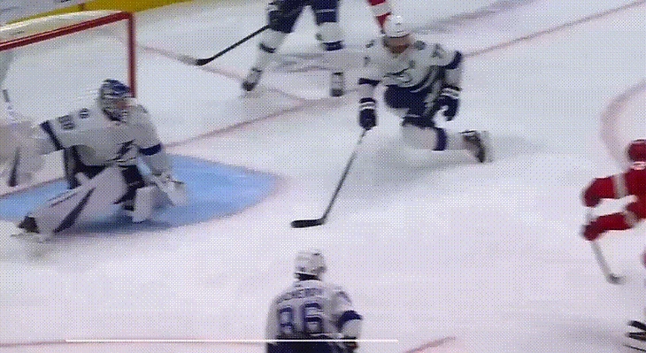 Василевский исполнил совершенно невообразимый, нехарактерный для вратарей прыжок. Садиться в шпагат было некогда, поэтому Андрей оттолкнулся правой ногой и сразу бросился на шайбу. Этого хватило – второй бомбардир и снайпер «Ред Уингз» Алекс Дебринкет остался без гола, хотя бросил впритирку со штангой. Посмотрим еще раз?