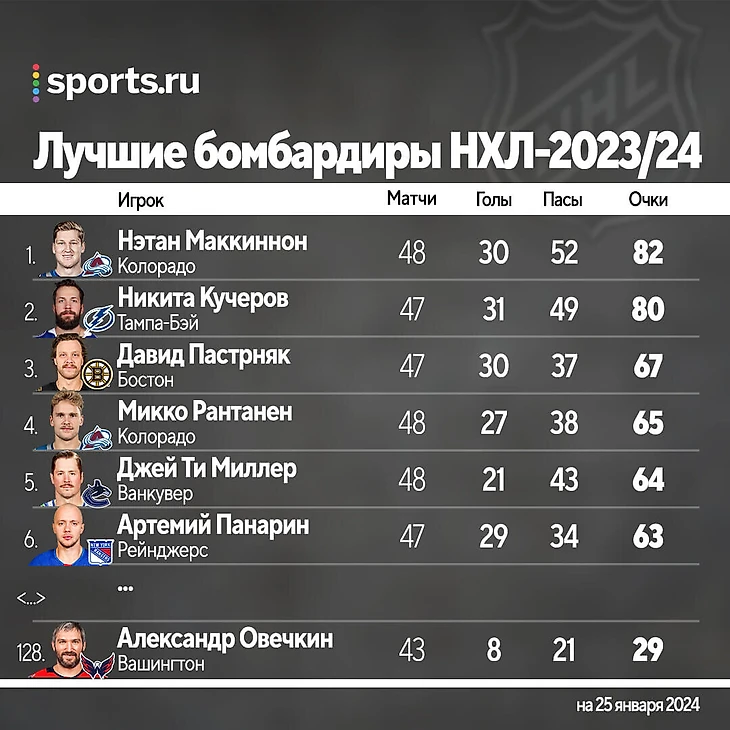 ● и самое интересное – выбил 82 очка в этой регулярке и снова вышел на первое место, обойдя Никиту Кучерова.
