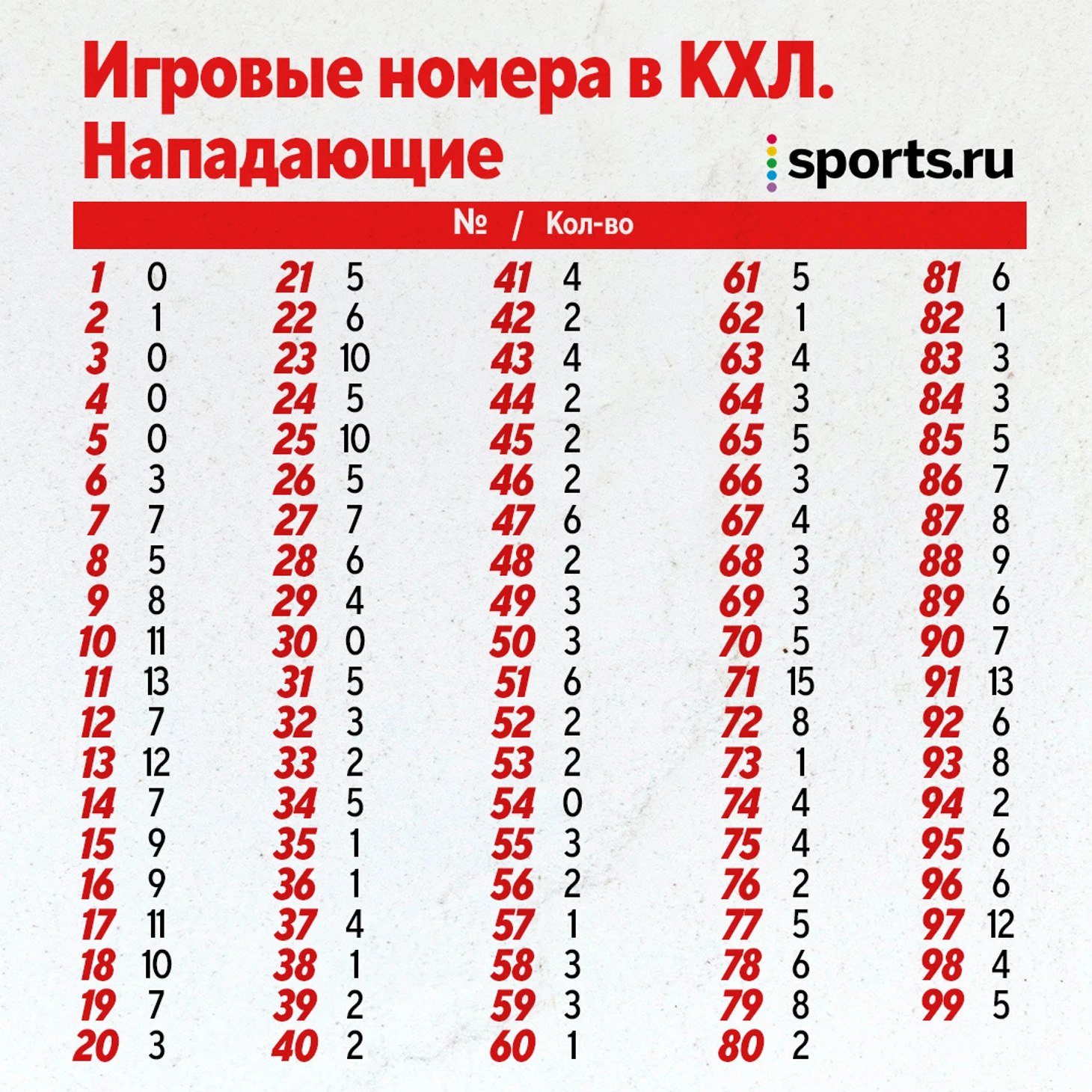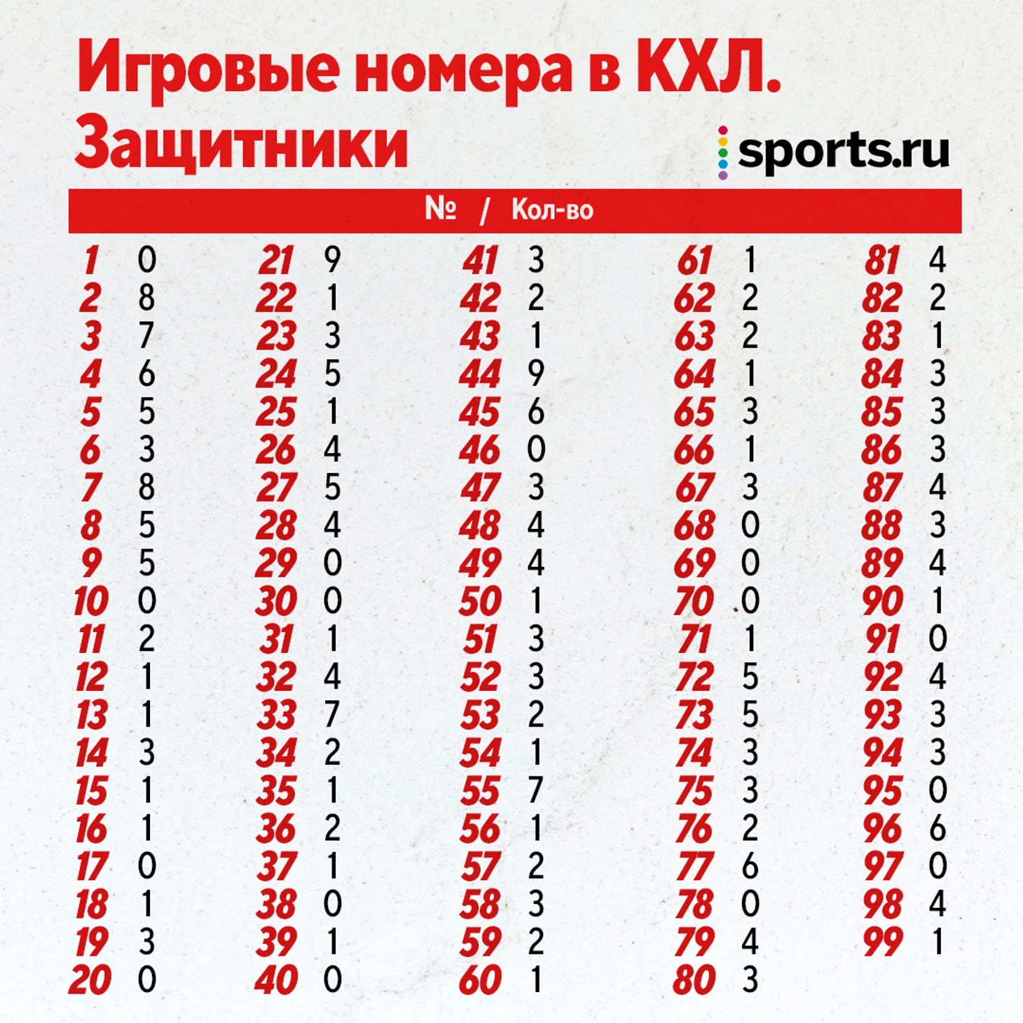 Какие номера в хоккее популярные, а какие – под запретом? Исследование Sports.ru