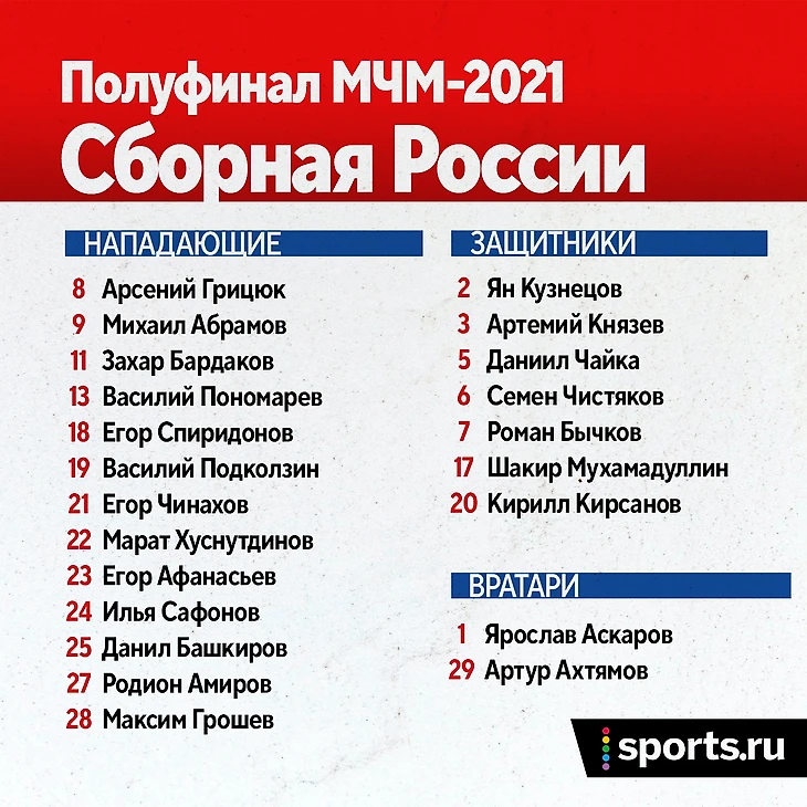 · 5 финнов, · 4 американца, · 1 швед, · 1 канадец. А так выглядел состав сборной России на последнем полноценном для нее МЧМ-2021: