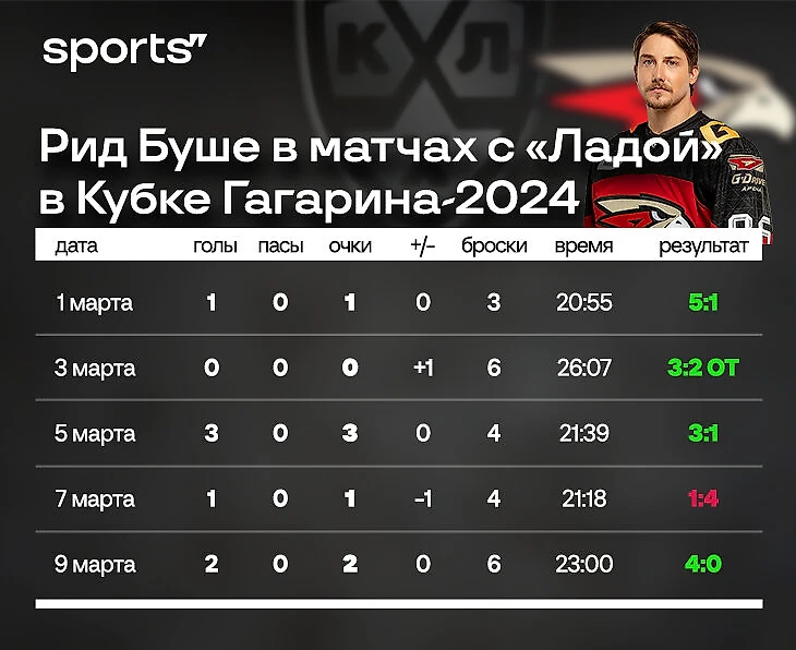 У КХЛ особый подход в плане статистики – она любит суммировать регулярку и плей-офф, и по такой схеме получается, что Рид Буше забросил уже 51 шайбу в сезоне – второй случай в истории. Первым, разумеется, был Сергей Мозякин с 55 голами в сезоне-2016/17, но при таких темпах Буше этот рекорд может пасть.