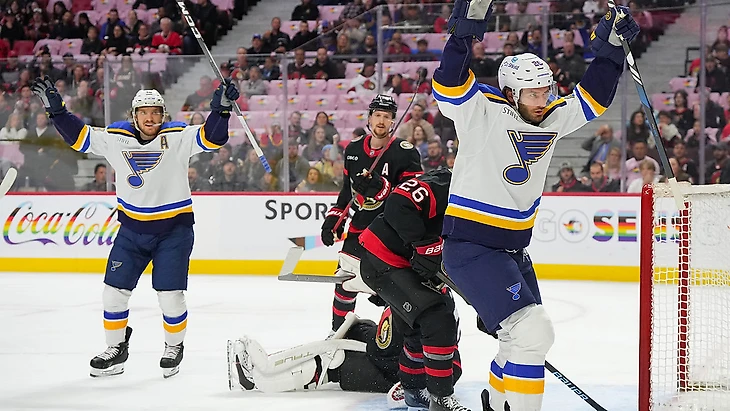 «Оттава Сенаторз»-»Сент-Луис Блюз» 2:5. Джордан Киру набрал 3 очка (1+2), Джейк Нейджбурс забросил 2 шайбы, Брэндон Саад набрал 2 очка (1+1), Алексей Торопченко и Павел Бучневич отдали по результативной передаче, Джоэль Хофер отразил 37 бросков.