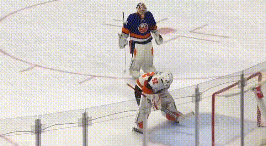 Перед овертаймом произошел казус: голкипер, как заведено в КХЛ, поехал к тем воротам, которые защищал в третьем периоде. В НХЛ команды, напротив, команды меняются сторонами. Об этом дружеским прикосновением Федотову сообщил соперник-соотечественник из «Айлендерс» – Семен Варламов.