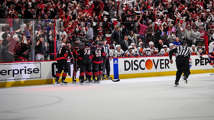 «Каролина Харрикейнз»-»Нью-Йорк Айлендерс» 5:3. Хозяева в 3 периоде забросили 4 шайбы. Сет Джарвис набрал 3 очка (1+2), Себастьян Ахо и Джейк Гюнтцель набрали по 2 очка (1+1), Андрей Свечников отдал 2 результативные передачи, Фредерик Андерсен отразил 9 бросков. В первом периоде Стефан Несен подрался с Кайлом МакЛином, в конце матча произошли массовые потасовки. «Ураганы» повели в серии 2-0.