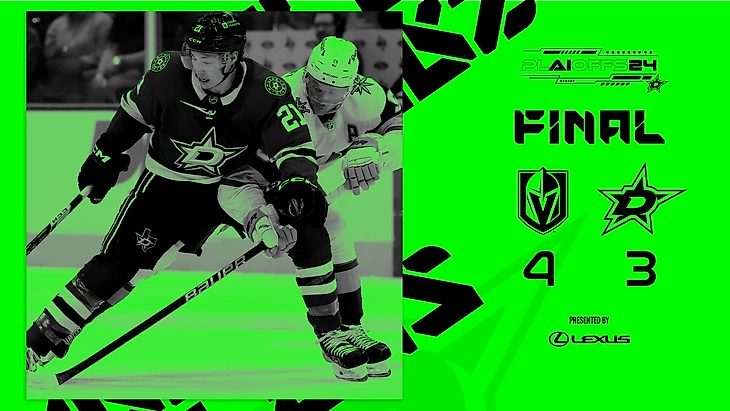 «Даллас Старз»-»Вегас Голден Найтс» 3:4. Джек Айкел и Ноа Ханифин отдали по 2 результативные передачи, Иван Барбашев отдал результативную передачу, Логан Томпсон отразил 27 бросков. «Рыцари» повели в серии 1-0.