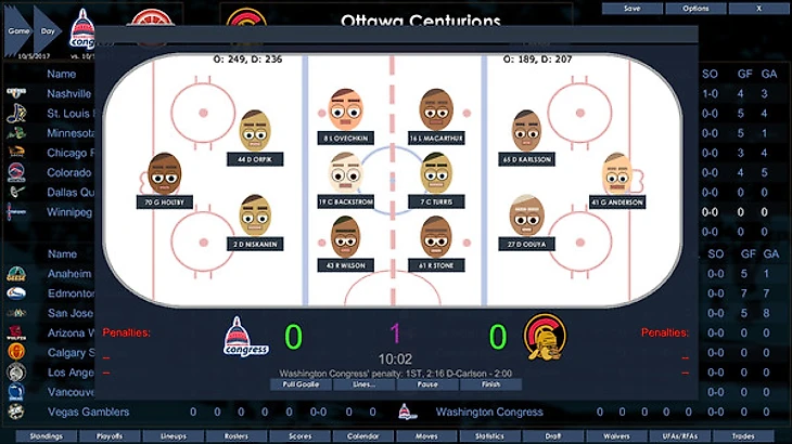 Разработчик пошел по пути хоккейного менеджмента. Игрок может выбрать команду с подходящей для него философией игры и развивать ее или менять при необходимости. Симулятор позволяет покупать хоккеистов, обменивать их, выставлять на драфт отказов, подписывать свободных агентов. Собрав команду мечты можно смело ввязываться в гонку за главный Кубок.