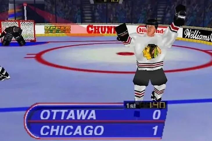 В 1996 году студия Atari Games выпустила игру Wayne Gretzky’s 3D Hockey. Она работала в аркадных автоматах и на консоли Nintendo 64. Это не классический симулятор, где пытаются добиться реалистичности.