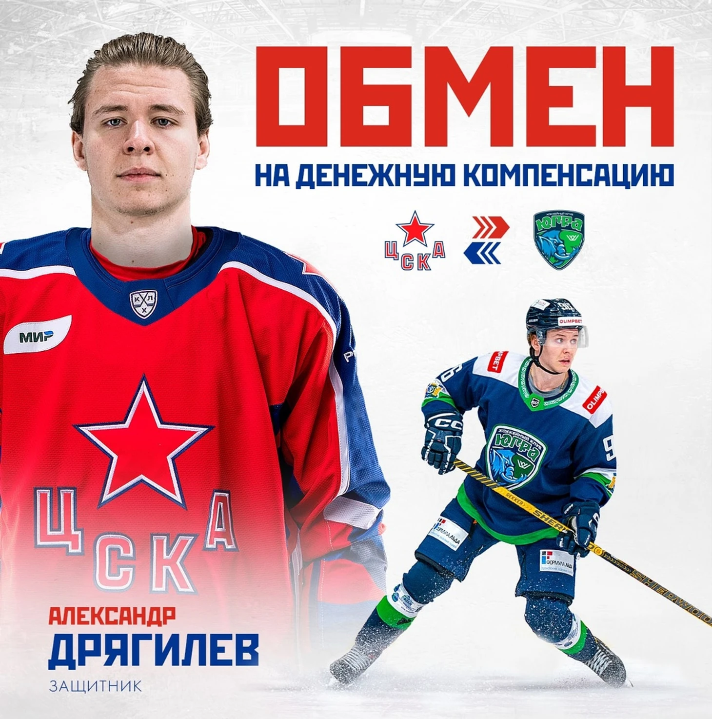 Защитник Александр Дрягилев перешёл в ЦСКА из «Югры» в результате обмена