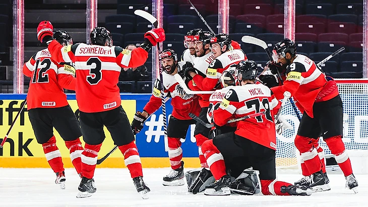 Австрия не только влюбила своей игрой нейтральных зрителей, но и заставила болеть самих хозяев против канадцев! Очко добытое в игре с родоначальниками далось дорогой ценой. Причем своего рода прологом послужило дерби со сборной Швейцарии, где австрийцы умудрились отгрузить на одну меньше, но за весь матч, при этом едва не выиграв у соседей. 2:0, 3:1, но затем класс швейцарцев все же взял свое.