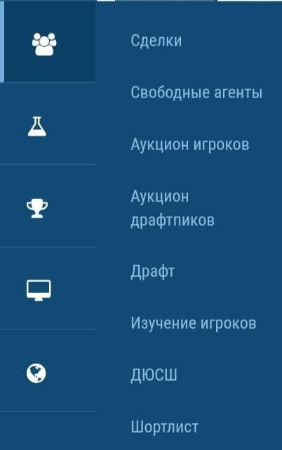 работа с составом: школа, скаутинг, обмен, трансферы, свободные агенты;
