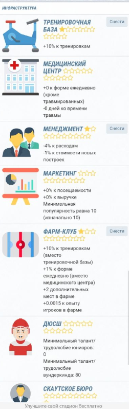 развитие инфраструктуры клуба: стадион, тренировочная база, фарм-клуб;