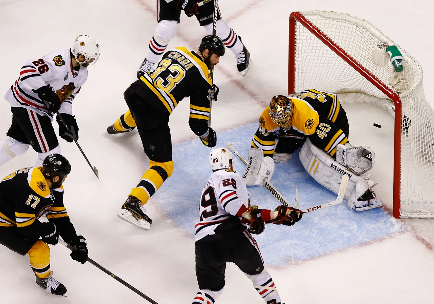 2013 - опять Бостон, и опять драма: прекрасно смотревшиеся весь плов, они обессилели и не вытянули последние игры с идеально прошедшим укороченную регулярку Чикаго. Сказалось невероятное количество травм. Например, Бержерон играл с дыркой в легком - его проткнуло сломанное ребро.