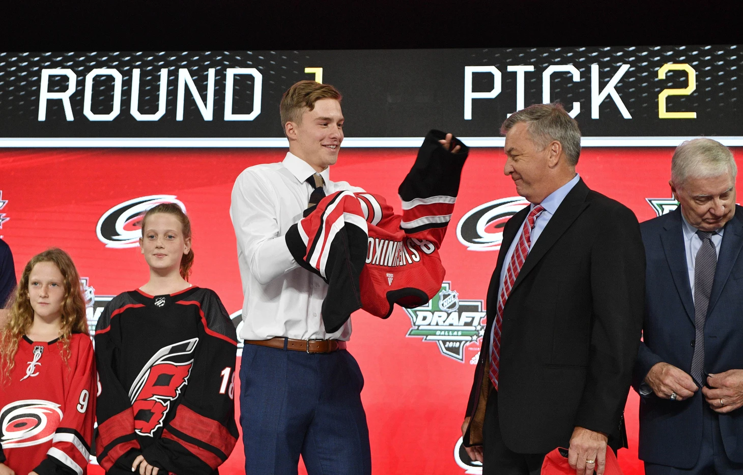 №2 – н Андрей Свечников, «Каролина». Если в 2017-м наше представительство на драфте было откровенно скудным, то через год выбор выглядел гораздо веселее. В первую очередь, конечно, из-за Андрея Свечникова. Воспитанник «Ак Барса» уехал за океан в 16 лет и на юниорском уровне разрывал тамошние лиги – лучший новичок USHL в 17 лет и лучший новичок OHL год спустя. Хайп вокруг русского «некствана» стоял мощный.