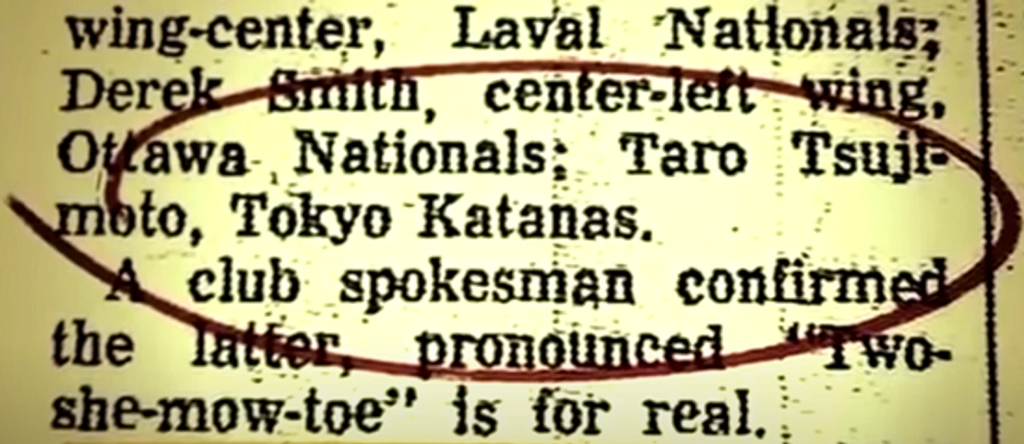 Шутка вышла из-под контроля, и когда НХЛ понадобились полные данные Таро, их тоже придумали: родился в Осаке 16 ноября 1954 года. Рост – 175 см, вес – 75 кг.