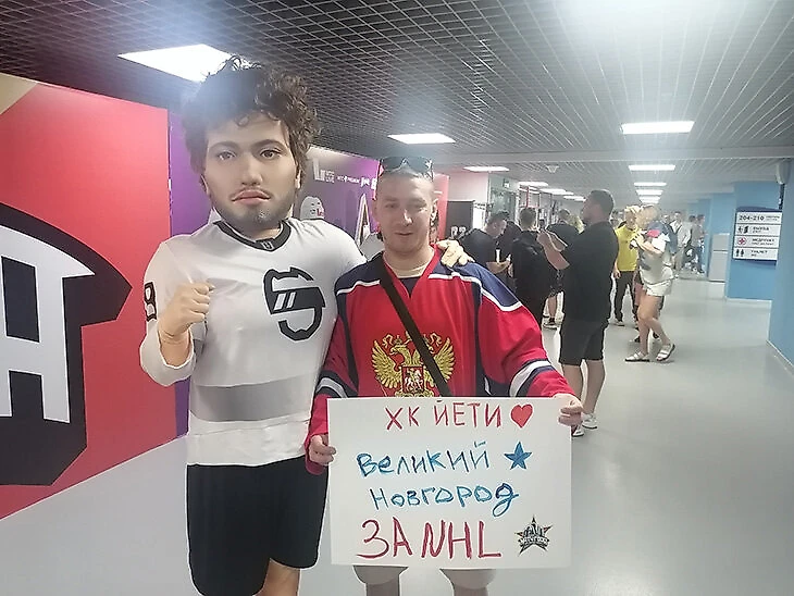 Уникальности матчу явно добавляли болельщики. Многие пришли на игру в формах «Тампы», «Вашингтона», «Торпедо» и ЦСКА. Такой набор вы не найдете нигде. Всех развлекал маскот Михаил Сергачев (да, не тот настоящий хоккеист Сергачев из НХЛ). Люди переключались с него лишь после неожиданного появления звездных гостей – Артема Дзюбы или Тимофея Мозгова.