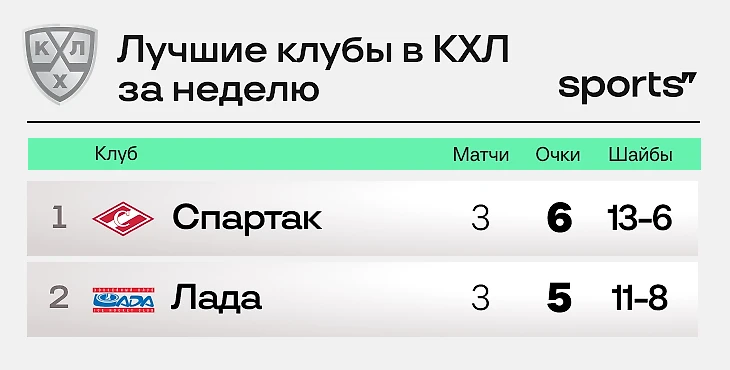 ● Неудивительно, что лучшим на прошлой неделе стал «Спартак». Клуб прямо сейчас идет первым и во всей лиге. Команда Жамнова прошла без поражений «Торпедо» (4:2), «Динамо» из Минска (5:2) и «Динамо» из Москвы (4:2). Одним из героев результативных матчей «Спартака» стал центр первого звена Иван Морозов, отметившийся очками в каждой из трех игр (2+3).