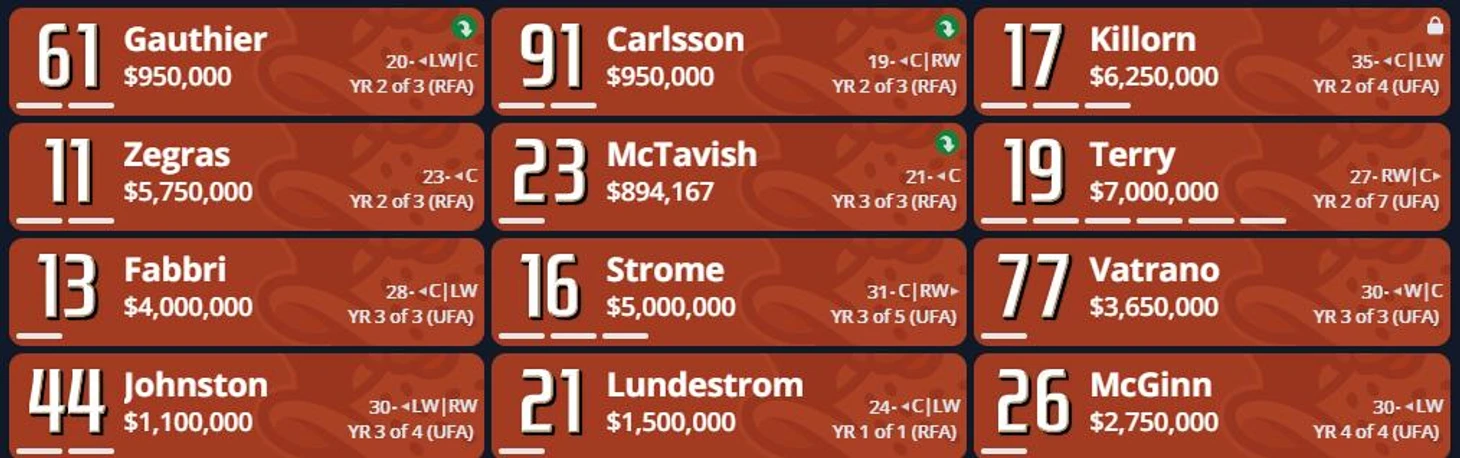 Каттер Готье – 41 матч, 65 (38+27) очков в NCAA, лучший снайпер лиги. Победитель на МЧМ-23/24 – 12 очков в 7 встречах. Один из главных претендентов на Колдер Трофи – приз лучшему молодому игроку сезона. В связке с Карлссоном может показать себя во всей красе и раскрыть свои снайперские навыки.
