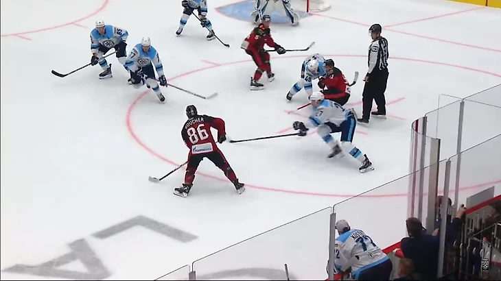 Шайбу получил Рид Буше, который еще недавно пропускал матчи из-за травмы. После возвращения лидер «Авангарда» мало результативен – 2 передачи за 4 игры. Но этот бросок после выигранного вбрасывания сильно помог: