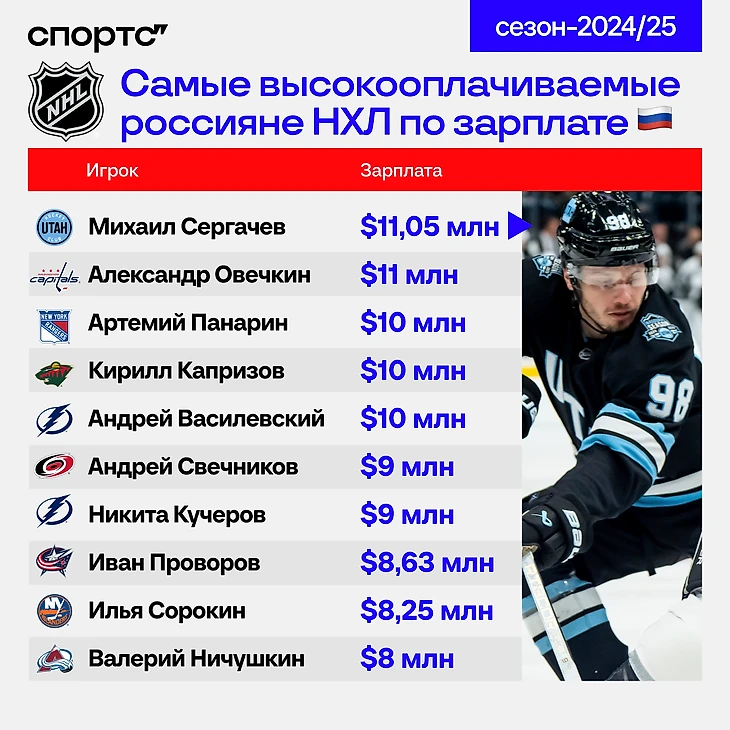 Сергачев – главный русский богатей в сезоне-2024/25, Кучеров даже не в топ-5