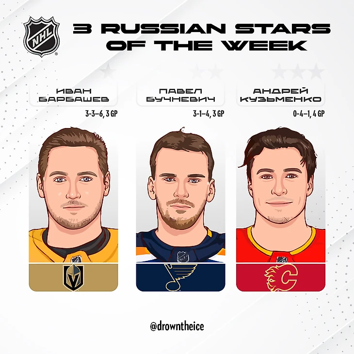 🗡 «Вегас» стартовал с трех побед — над «Колорадо», «Сент-Луисом» и «Анахаймом». Иван набрал 4 (2+2) очка против «Эвз» и 2 (1+1) очка против «Блюз».
