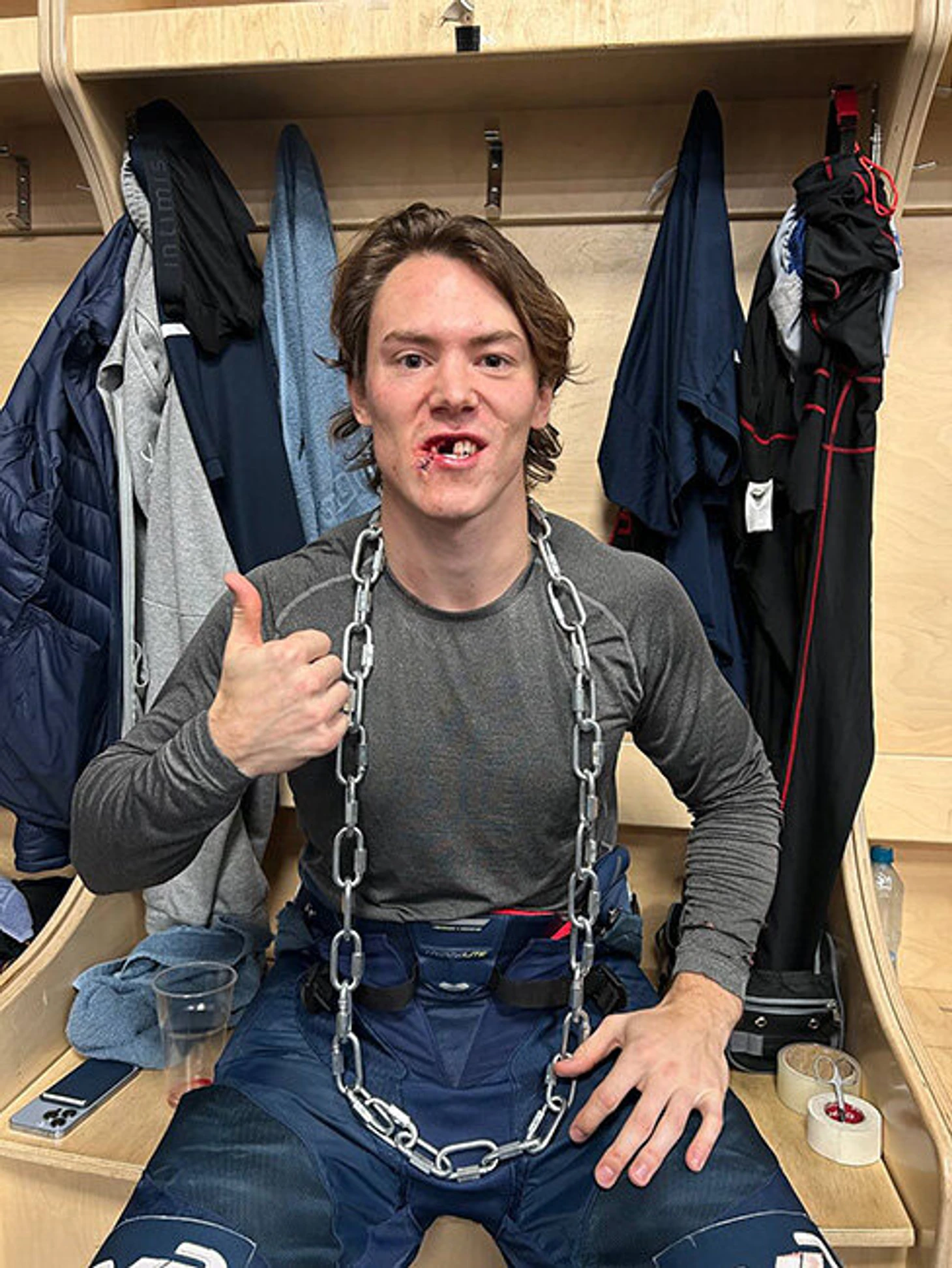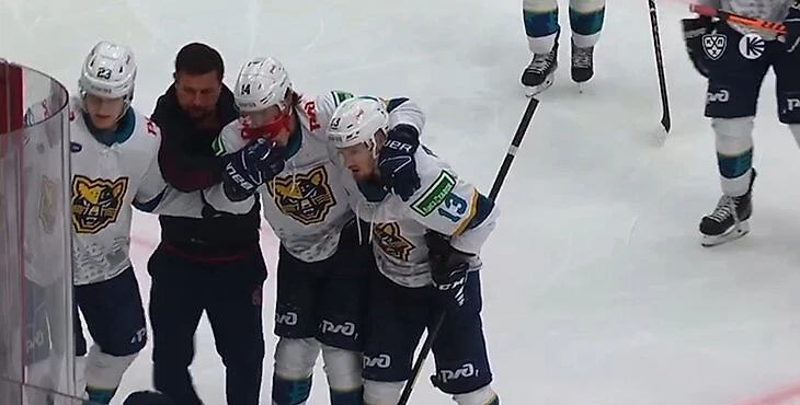 Страшное в КХЛ: игрок получил лезвием конька по лицу и потерял зубы