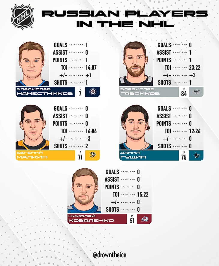 НХЛ: статистика российских игроков в картинках от 21.10.24