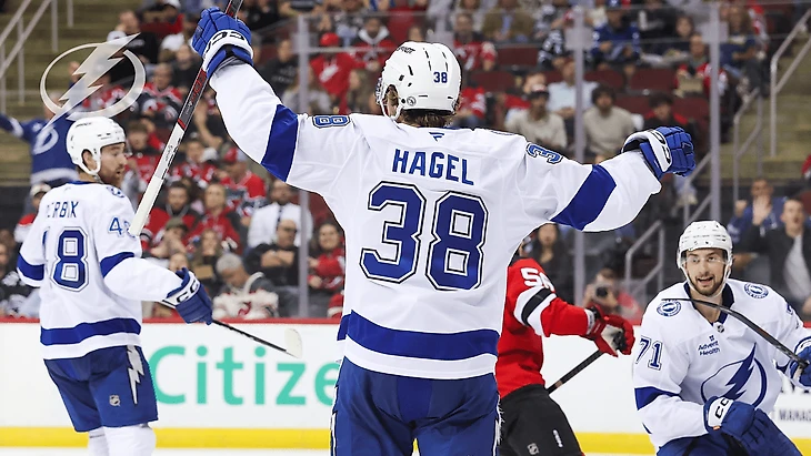 «Нью-Джерси Дэвилз»-»Тампа-Бэй Лайтнинг» 5:8. Гости во втором периоде забросили 5 шайб. Брэндон Хагель набрал 4 очка (3+1), Энтони Чирелли отдал 4 результативные передачи, Янис Мозер набра 3 очка (1+2), Виктор Хедман забросил 2 шайбы, Джейк Гюнтцель набрал 2 очка (1+1), Никита Кучеров отдал 2 результативные передачи, Йонас Йоханссон отразил 30 бросков. У хозяев Джек Хьюз набрал 3 очка (1+2), Тимо Майер забросил 2 шайбы.