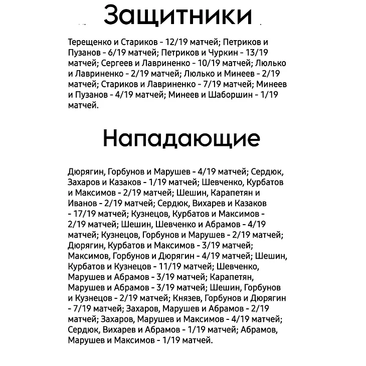 Когда я подводил первые итоги работы Андрея Лунева, то упоминал про отсутствие ротации. Здесь приложу фото всех игровых сочетаний, которые выходили в этом сезоне.