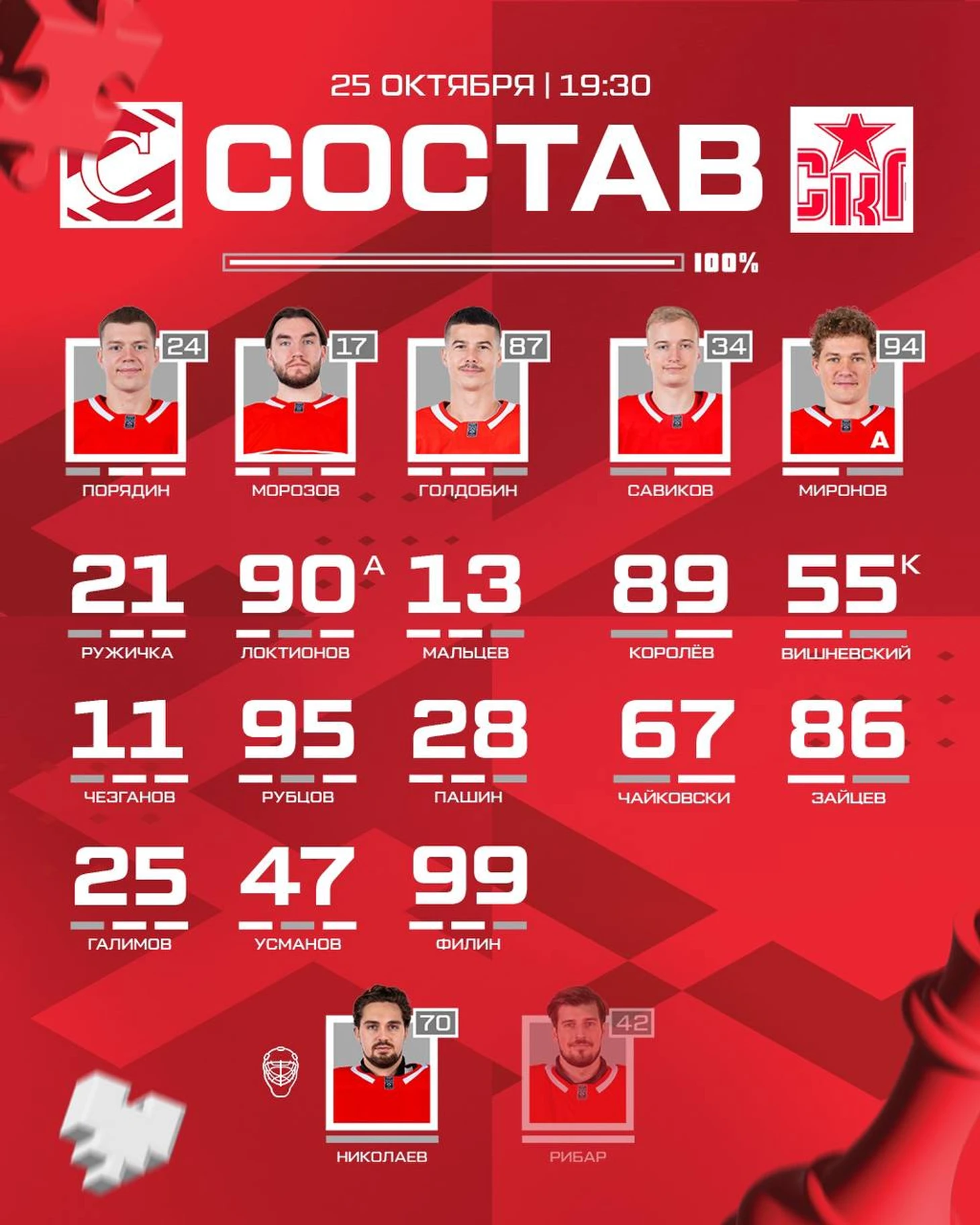 Хоть матч и получился зрелищным, однако не лучшим для Спартака, и это можно увидеть по общей статистике игроков за матч. Например, бросков в створ у Усманова почти столько же, сколько у всей первой тройки нападения Голдобин - Морозов - Порядин, а именно 5 против 4. СКА перебросал Спартак в два раза! Второй по броскам в команде Ружечка, он попал в створ 4 раза.