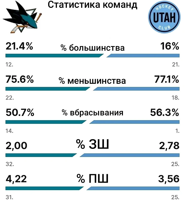 Вашему вниманию небольшая статистика команд: