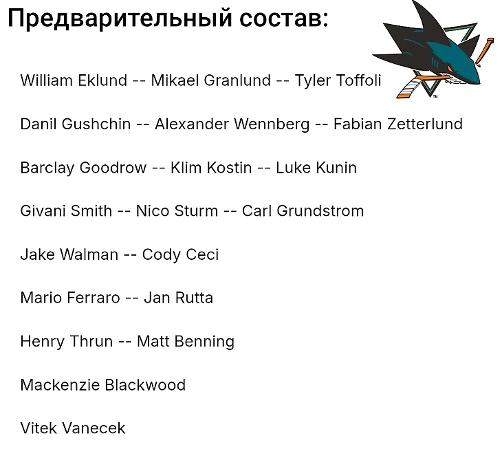 Так же стоит упомянуть составы команд на сегодняшний матч: