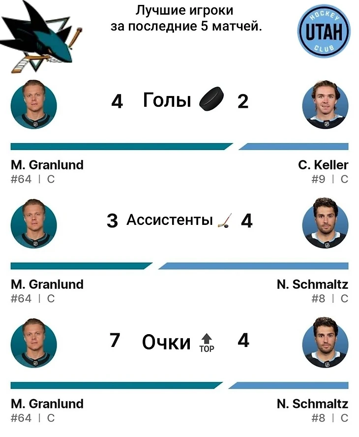 2 октября 2024 года Юта обыграла «Сан-Хосе» в выставочном матче НХЛ со счётом 3:1. У гостей дубль сделал Кайлер Ямамото, ещё одна шайба на счету Шона Дурзи. Единственный гол хозяев забил Мэттью Беннинг.
