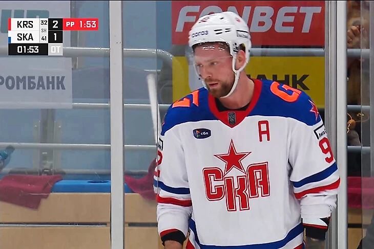 Основное время закончилось со счетом 1:1. Отлично сыграли вратари обеих команд – Джереми Смит («Куньлунь») и Павел Мойсевич (СКА). Могло дойти и до буллитов, но за две с небольшим минуты до конца овертайма удаление схлопотал Кузнецов.