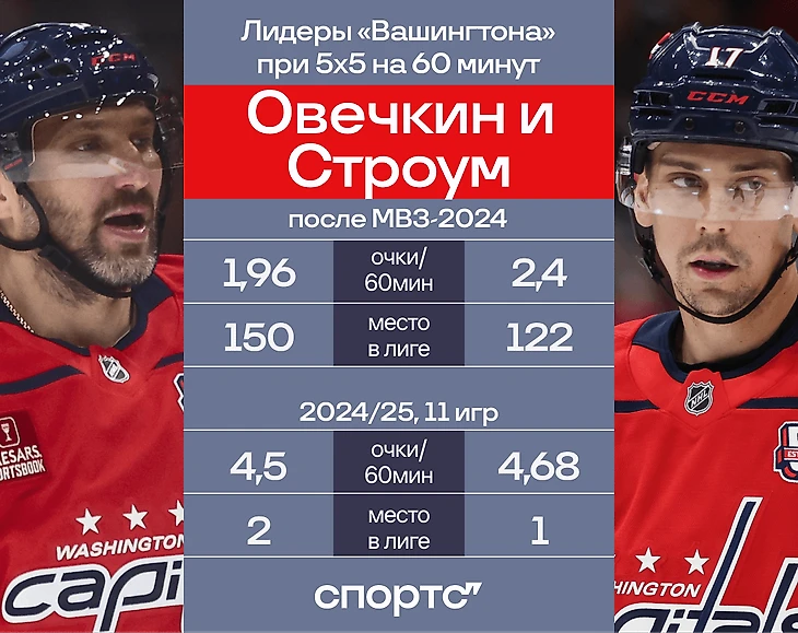Овечкин и Строум на двух первых местах по очкам на 60 минут при 5 на 5, а сразу за ними еще двое из «Вашингтона» – Протас и Макмайкл. Это, конечно, изменится на более длинной дистанции, потому что цифры совсем запредельные. В прошлом сезоне, например, 3+ было только у троих – Макдэвида, Маккиннона и Кучерова. А тут в полтора раза больше. Но, с другой стороны, наверняка худо-бедно наладится большинство.