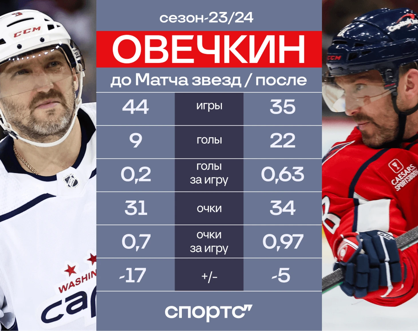 Но я думаю, это так не работает. Овечкин и раньше брал неделю отдыха во время Матчей звезд, но это ни разу не давало такого буста.