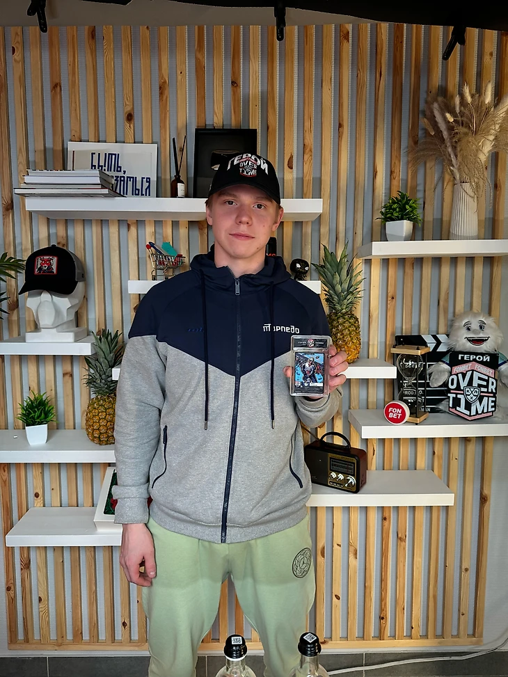 Роман, автор блога «Роман с Хоккеем», специально приехал в Нижний Новгород, чтобы поговорить с Никитой и подарить ему уникальную карточку лучшего героя месяца проекта #FONBETOVERTIME
