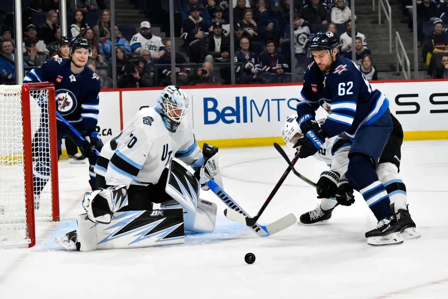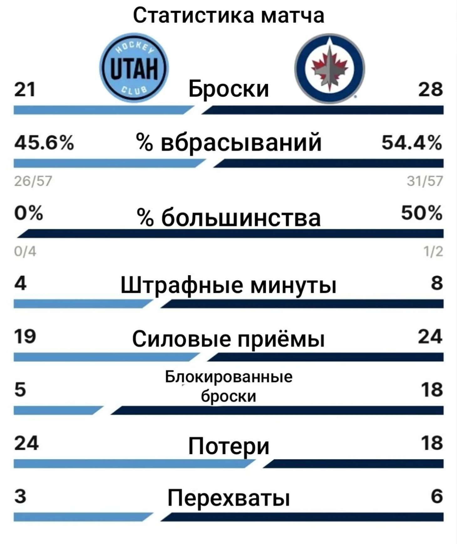 Коннор Хеллибак №37 (11 игр, 10 побед, 93.2% отраженных бросков) совершил 21 сэйв, и помог одержать уверенную "сухую" победу в матче "Виннипег" 3-0 "Юта" на стадионе "Канада Лайф Центр".