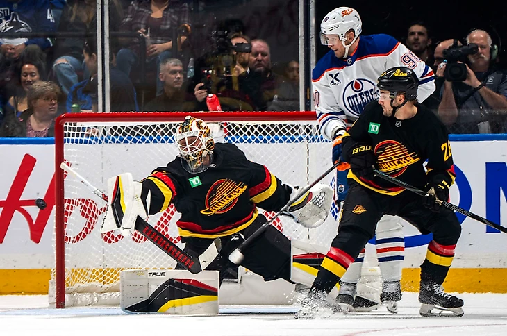 «Эдмонтон» резво начал, быстро заработал большинство, и хотя «косатки» героически отбивались две минуты, Леон Драйзайтль открыл счет, когда Куинн Хьюз уже покинул штраф-бокс, но еще не доехал до зоны. Дальше был равный и обоюдоострый хоккей, но первый период так и закончился. В начале второго гости забросили две подряд, но «Кэнакс» вернулись в игру двумя своими шайбами за полторы минуты. После этого Элиас Петтерссон в большинстве броском на 95 миль в час попал в крестовину (и потом еще бросил в створ на 93,5 м/ч). Кто знает, повернулся бы матч иначе, забрось там явно приходящий в себя швед? Но штанга – разновидность промаха.