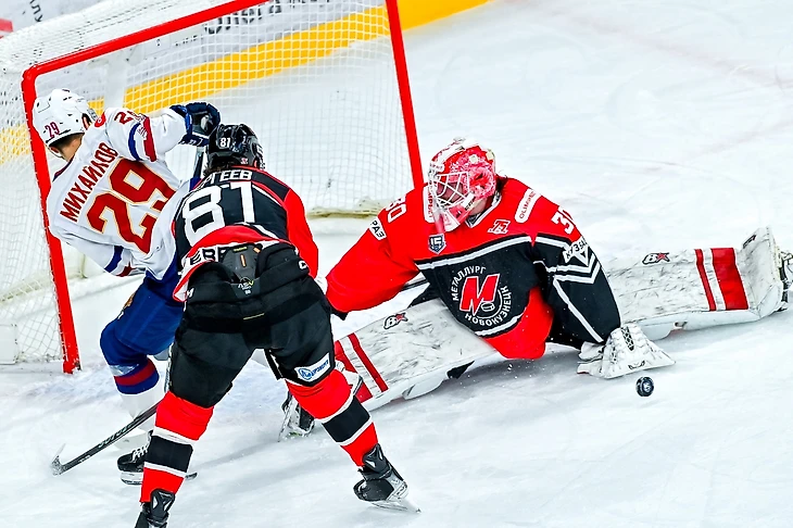 Дальше было еще опаснее: голкиперу «Металлурга» пришлось совершать тройное(!) спасение.