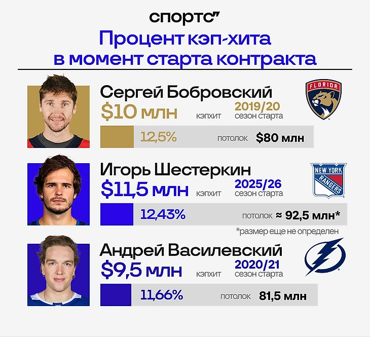 Заметьте: по кэпхиту Шестеркин не обошел Панарина (11,64 млн), который, как и Василевский, подписывался в 2019-м.