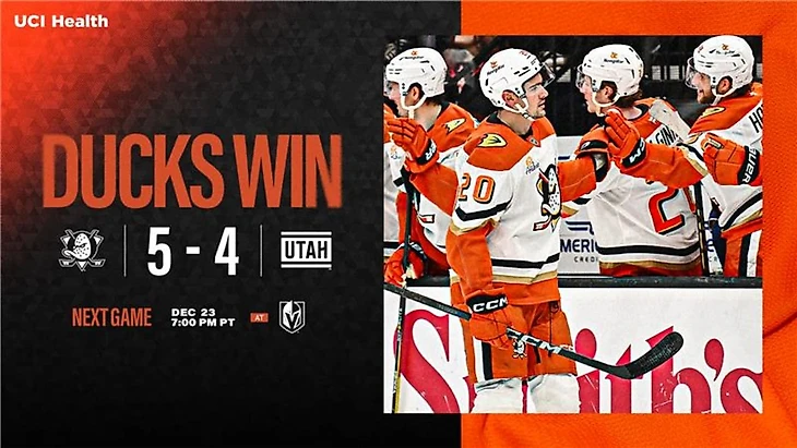 «Юта»-»Анахайм Дакс» 4:5 (Бул). Мэйсон МакТавиш в серии буллитов принёс победу гостям. Робби Фаббри забросил 2 шайбы, Каттер Готье и Олен Целлвегер отдали по 2 результативные передачи, Павел Минтюков отдал результативную передачу, Лукаш Достал отразил 21 бросок. У хозяев Клейтон Келлер набрал 4 очка (2+2), Баррет Хэйтон набрал 2 очка (1+1), Михаил Сергачёв отдал 2 результативные передачи.