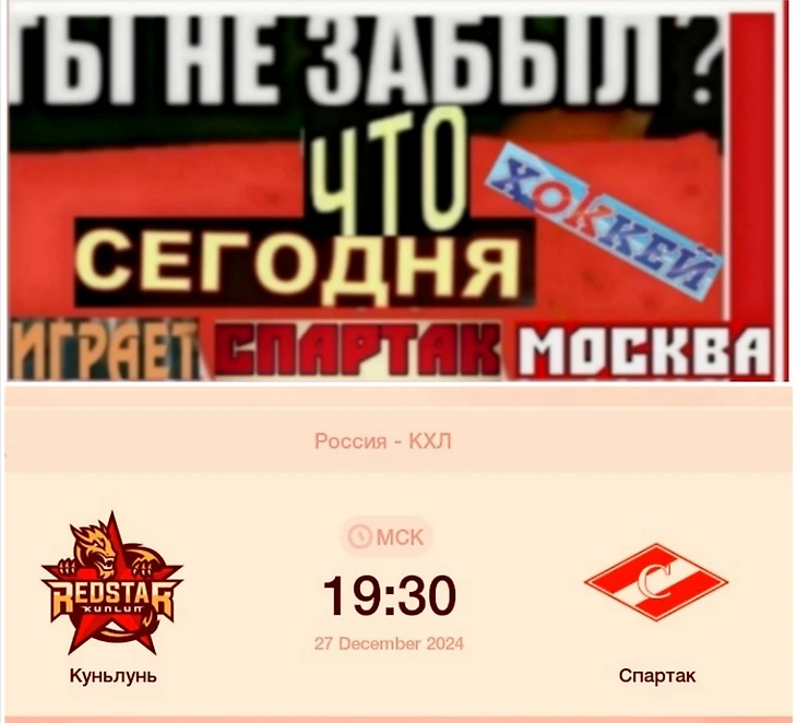 Сегодня, 27 декабря, на «Арене Мытищи» китайский клуб «Куньлунь Ред Стар» примет московский «Спартак» в рамках очередного игрового дня регулярного чемпионата КХЛ.